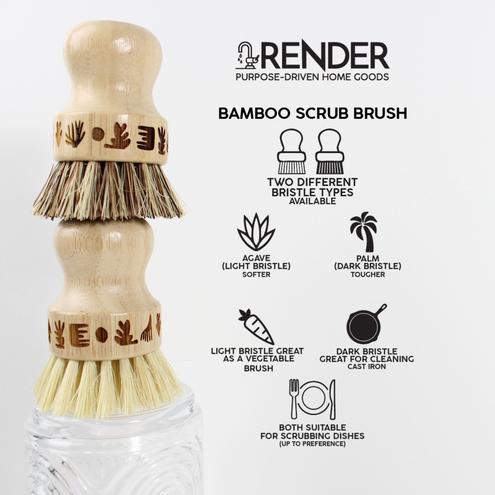 Sustainable Bamboo: Our scrub brush is made from bamboo, a rapidly renewable resource that requires minimal water and no pesticides to grow.